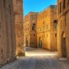Al-Rustaq Castle is at the outskirts of Al-Rustaq and is one of the most famous castles in the Sultanate. The castle was built by Imam Sultan bin Saif II in the early 18th century, who is buried in this castle along with his son. Al Hazm Castle features a massive beautiful wooden door with intricate writing and it is unique among other Omani castles for having its roof held by columns instead of the traditional wooden roof supports. The massive Al-Rustaq Fort, a much older fort dating back to the 13th century, is near the city market and be can be seen from the surrounding hills. The fort is cradled by four tall towers, the tallest being more than 18 meters tall. The fort also has its own falaj water system within it.